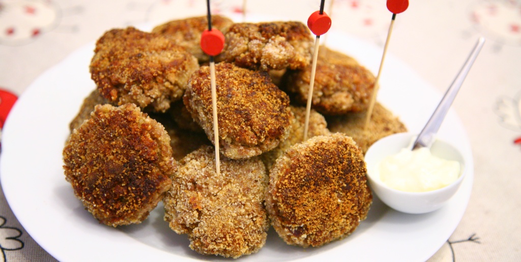 A questo punto preparare delle palline, passarle nel pangrattato e appiattirle leggermente.