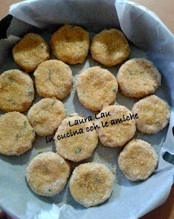 Aiutandoti con un cucchiaio, prendi un pò di impasto e forma delle polpette che schiaccerai leggermente con le mani, passale nel pane e metti in teglia, bagnati un pochino le mani per rendere più semplice modellare le polpette!
