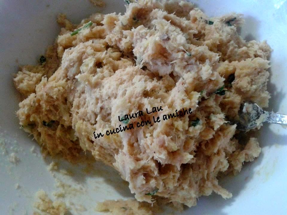 Quando le patate saranno intiepidite, uniscile al composto di tonno, aggiungi l’uovo intero, il parmigiano, il pane grattugiato e amalgama bene il tutto.