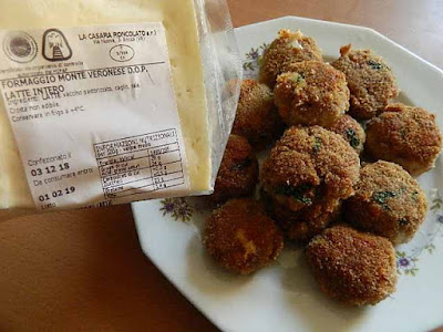 ripieno filante di formaggio Monte Veronese, Io ho fritto con pochissimo olio le Polpette Filanti ma volendo un piatto ancor più leggero possiamo optare per la cottura in forno.
