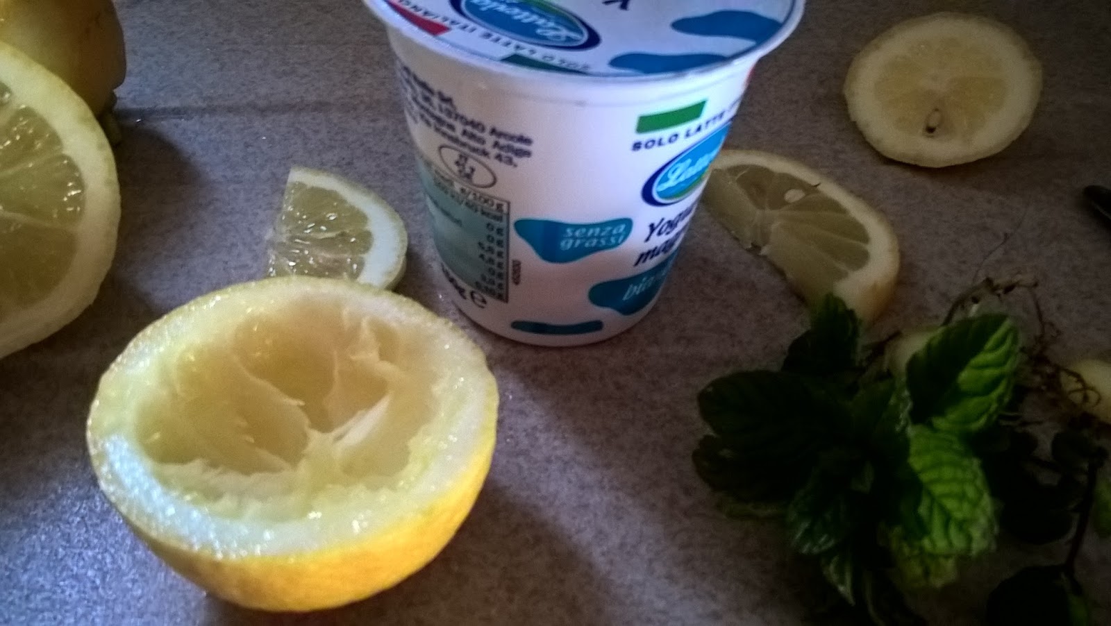 Per accompagnarle ho preparato una salsa con yogurt bianco (non dolce), succo di limone, foglioline di menta tritate. Questa salsa renderà più appetitose le polpettine. Per l’impiattamento ho versato la salsa in un limone svuotato.