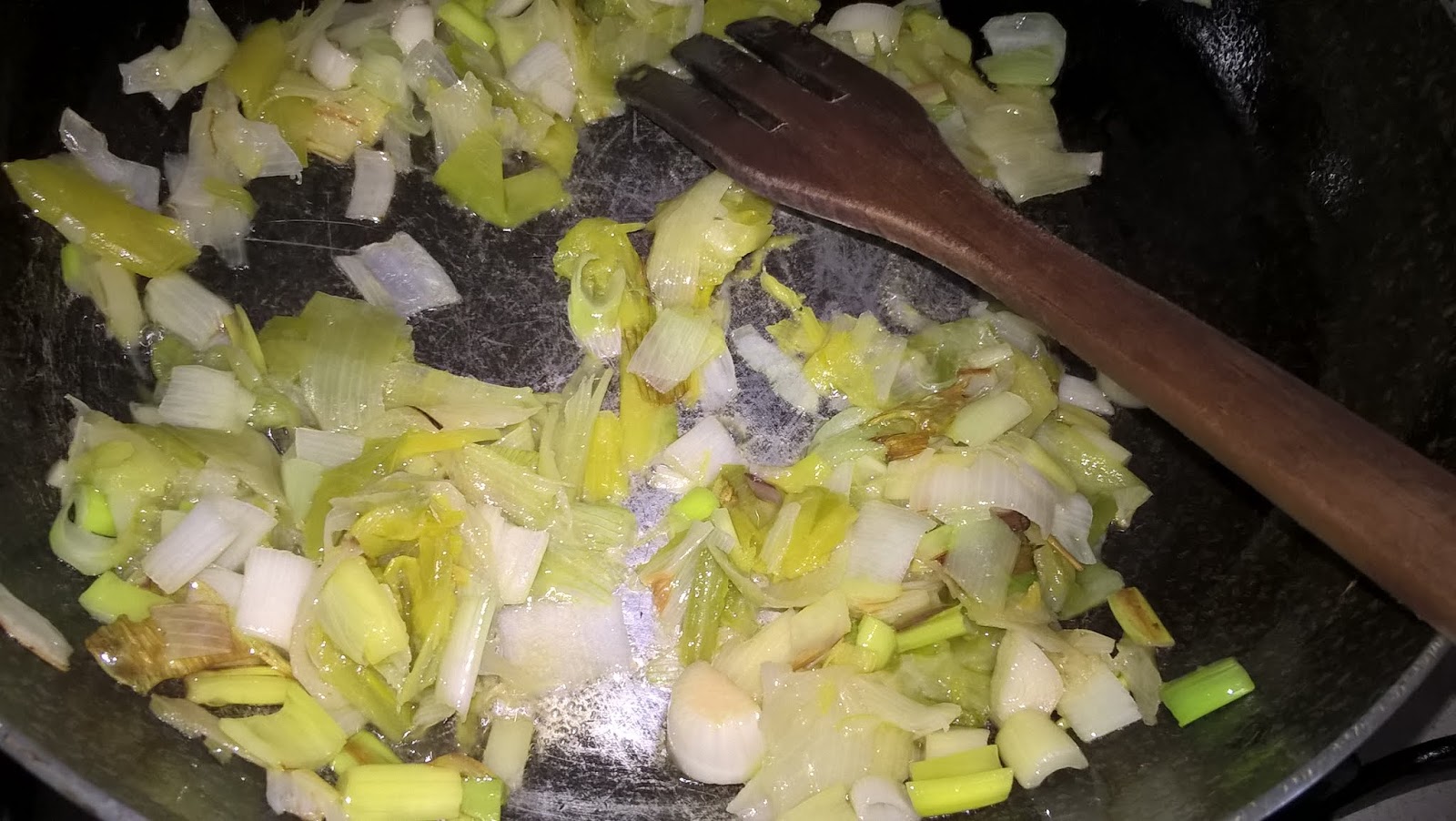 Ingredienti per 4 persone: due porri, 400 g di spinaci già cotti e strizzati, 2 uova, sale, pepe nero, 100 g di parmigiano grattugiato, pangrattato quanto basta, olio extravergine d’oliva.