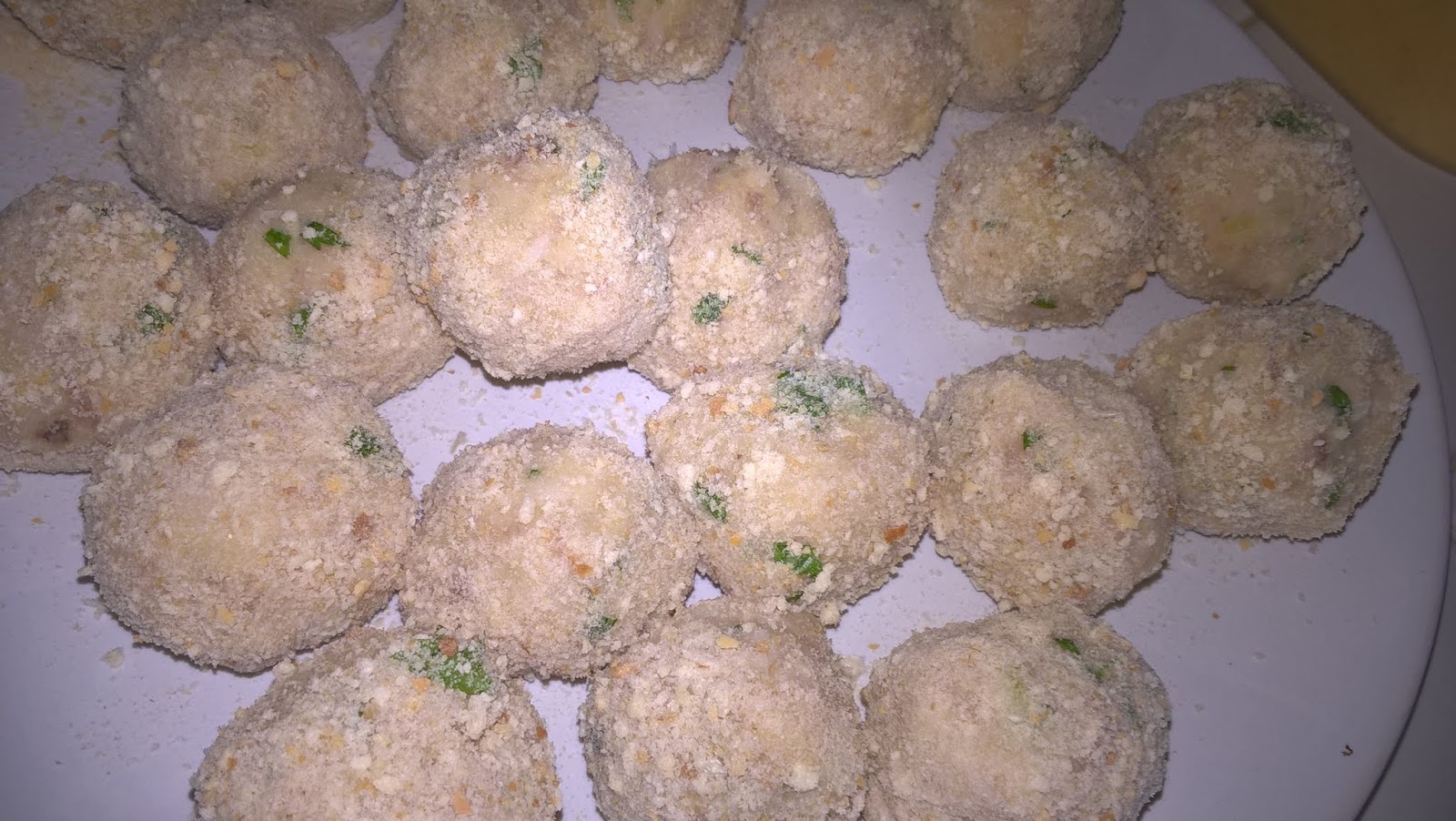 Con le mani inumidite formate tante piccole sfere che passerete nel pangrattato