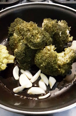 Attendere che la pressione si esaurita e porre i broccoli in una pentola antiaderente con poco olio e lo spicchio d’aglio tritato grossolanamente ..