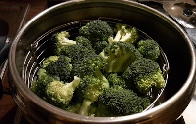 Porre le cimette dei broccoli ( cercare anche di utilizzare il gambo pelato …paghiamo anche quello) in una pentola a pressione per la cottura a vapore..