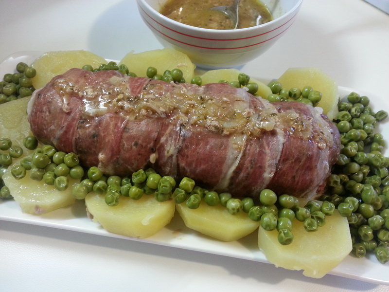 Il polpettone è una delle preparazioni di carne più versatili, ci si può sbizzarrire con tanti ingredienti e farne ogni volta una versione differente. Questo polpettone in realtà è piuttosto classico negli ingredienti ma anziché essere cotto in tegame o al forno è cotto al vapore: in questo modo rimane morbido e leggero. Io l’ho preparato col Bimby, cuocendo contemporaneamente le patate e i piselli e, nel boccale, una gustosa salsina da accompagnare alla carne. Questo fantastico robot semplifica e abbrevia i tempi, ma di seguito troverete anche il procedimento tradizionale per chi non ha il Bimby.