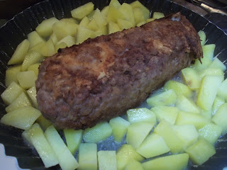 A metà cottura delle patate, adagiatevi sopra il polpettone che nel frattempo avete fatto rosolare su entrambi i lati.