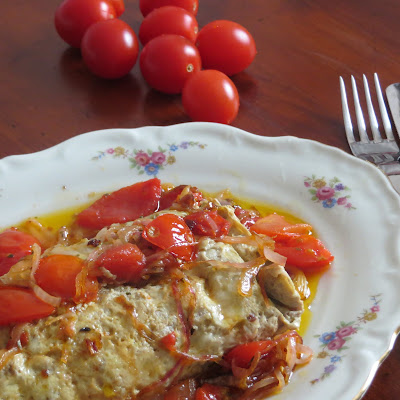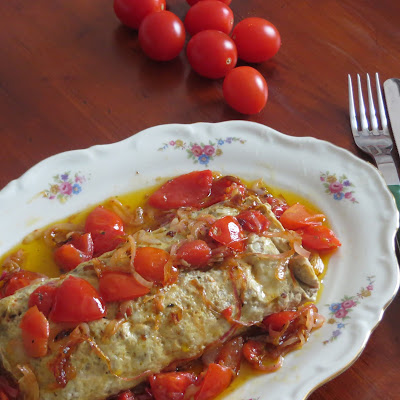 In una padella scaldate un filo di olio E.V.O. e fate appassire la cipolla, aggiungete un cucchiaio di aceto rosso, una spolverata di origano e per finire i pomodori a pezzetti.