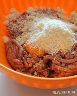 Al macinato e rossi d’uova aggiungete anche il parmigiano. Io non aggiungo sale, ma voi siete liberissimi di farlo. :-)