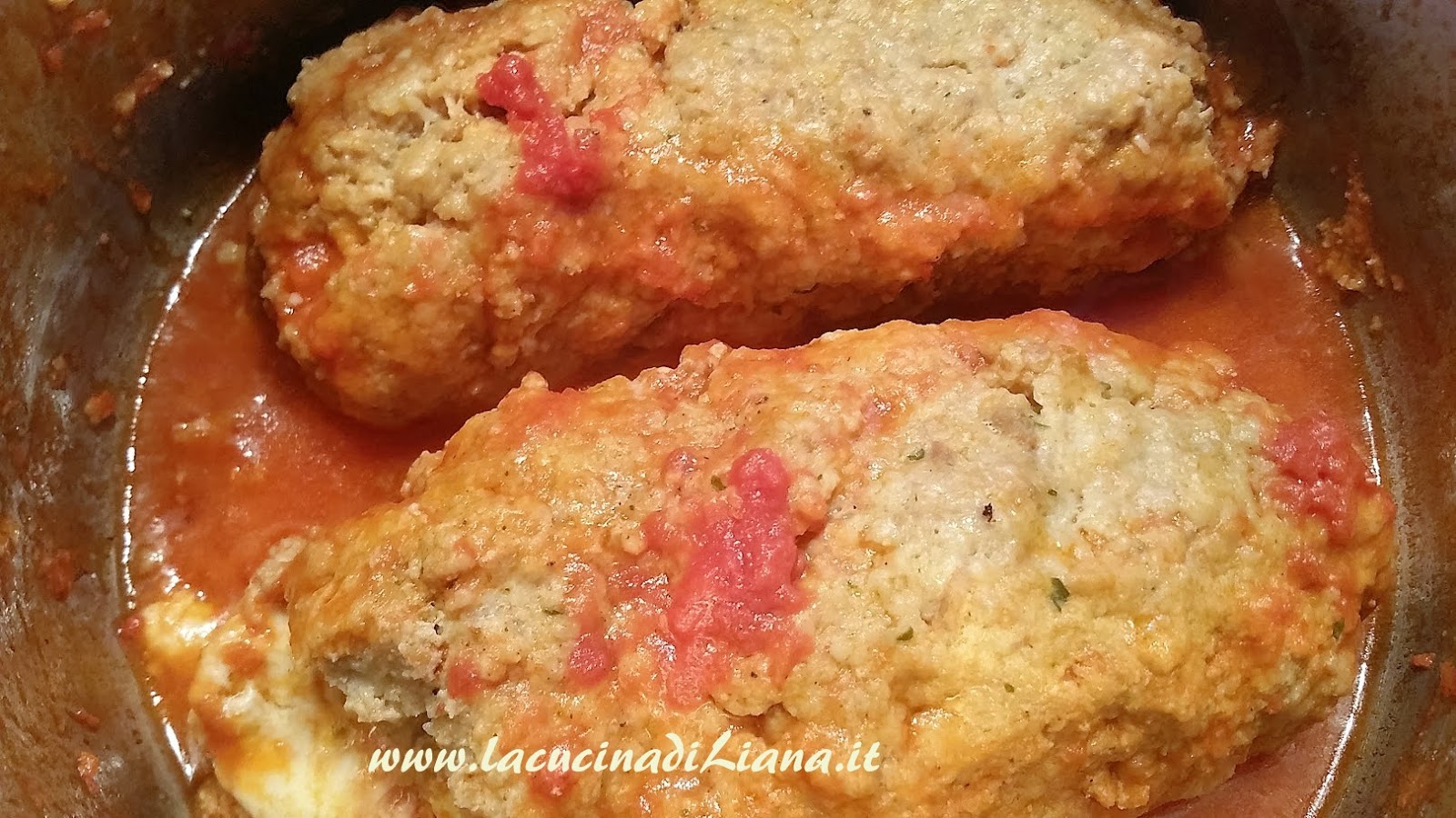 Se il pomodoro a fine cottura fosse troppo liquido lasciare ancora un po’ sul fuoco per farlo addensare, quindi una volta intiepidito il polpettone, affettarlo, disporlo sul piatto da portare e irrorarlo con la salsa di pomodoro.
