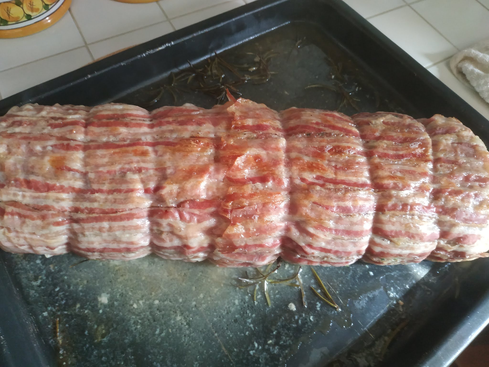 Come vedete c’è lo stesso grasso derivato dalla cottura, quindi non serve aggiungere altro. Passate qualche minuto sotto il grill in modo che la pancetta assuma un bel colore dorato. Tagliate a fette e il vostro piatto della domenica è pronto per essere gustato in compagnia, magari con un contorno di verdure fresche.