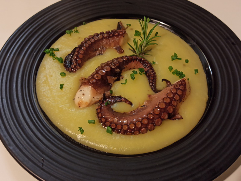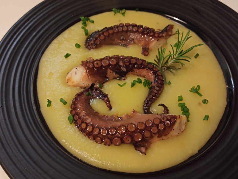 Ultimamente realizzo questo piatto con una tecnica di cottura particolare: la cottura sottovuoto a bassa temperatura del polpo, che in questo modo viene molto tenero ma consistente e saporito, tanto che non serve nemmeno salarlo.