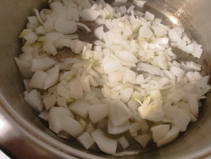Tritare la cipolla è metterla a rosolare in una casseruola con un giro di olio extravergine d’oliva.