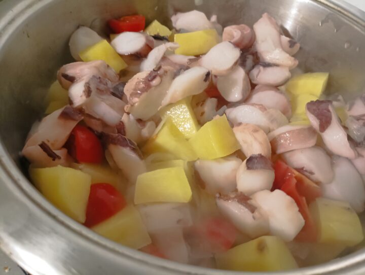 Preparazione del Polpo e patate in umido