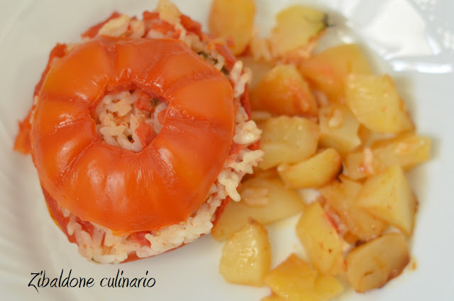 Servire i pomodori accompagnati da qualche fetta di patata.