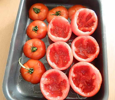 tagliare la calotta, svuotare i pomodori,