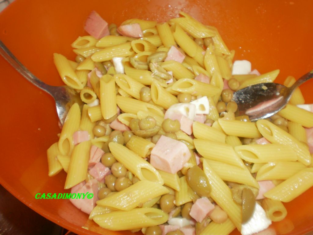 Ho unito gli ingredienti alla pasta cotta in acqua salata e zafferano, ho condito con un pò di olio