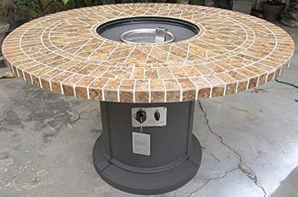 Porcelain Mosaic Tile Outdoor Fire Table Pit 48 Fireplace Dining Table With Lava Rocks Grey Base