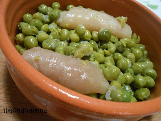 Arriva la Primavera e con essa la voglia di rispolverare ricette con le primizie di stagione. Al mercato fanno capolino sulle bancarelle i primi piselli. Teneri e dolci, racchiusi nei loro baccelli verdi, mi ricordano il periodo spensierato della mia infanzia. Era usanza infatti stare seduti sui gradini di casa insieme ad amici e parenti e ” scorciuliari ” (sgranare ) i piselli ascoltando le storie dei più anziani. Che divertimento! E quanti rimproveri pure, perchè noi piccoli non solo ci incantavamo ad ascoltare tralasciando il lavoro, ma mangiavamo avidamente ” a manate ” il poco fatto! Oggi i rimproveri invece me li prendo quando dico a mia mamma che i piselli li compro già sgranati. Per lei ciò è inconcepibile, è antieconomico.