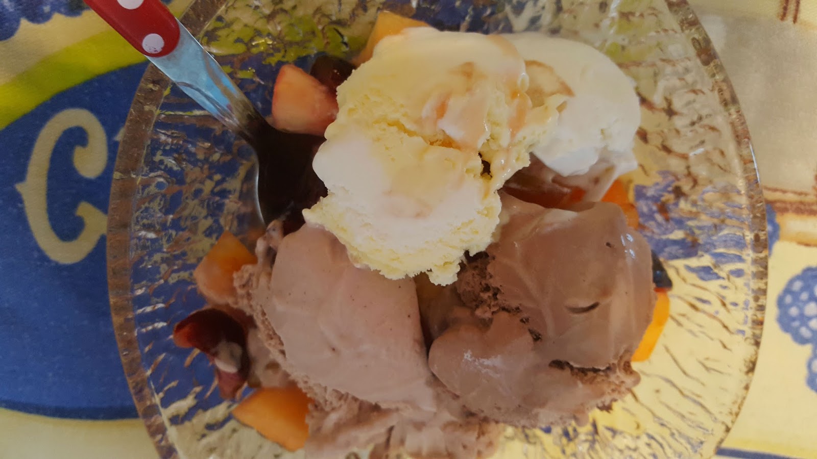 e per finire una buona Macedonia di frutta con tante palline di dolce gelato a piu’ gusti!!