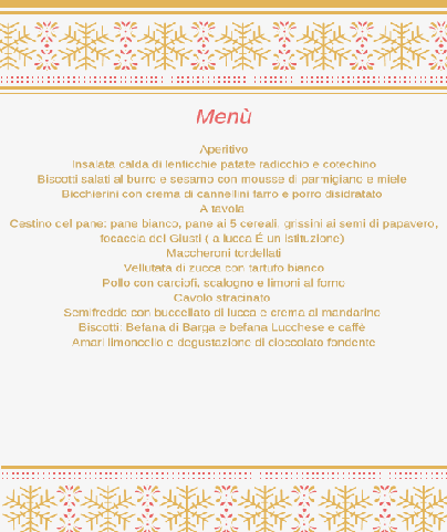 e questo il menù, inspirato in gran parte alla tradizione Toscana e Lucchese: