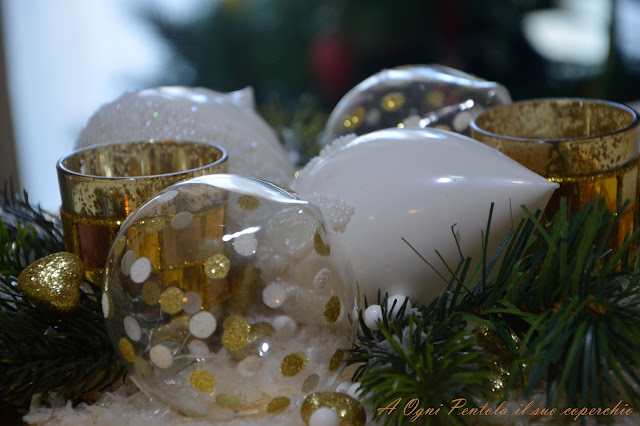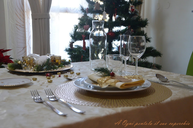 Per il pranzo di natale elegante ho preso come colore di riferimento l’oro, la tovaglia chiara, i piatti e le posate del servito “buono” come si dice dalle mie parti.