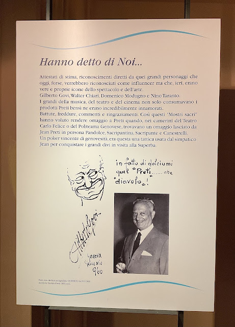 La mostra è stata inaugurata una settimana fa nella Sala delle Grida del Palazzo della Borsa di via XX Settembre per celebrare i 170 anni dell’azienda e ripercorre, attraverso una serie di immagini pubblicitarie e pannelli illustrativi, l’affascinante storia dell’impresa fondata nel 1851 in Piazza Portello da Giovanni Preti, pasticcere di talento e fondatore dell’azienda che nel corso del tempo ha regalato a Genova prodotti straordinari, a partire dal Sacripante, ricca golosità caratterizzata da strati di morbido pan di Spagna imbevuto di rum e Marsala, da un delizioso alternarsi di ricche creme e da una copertura di croccante cioccolato fondente. Non si può parlare di Sacripante senza menzionare la Sacripantina, delizia dalla particolare forma a cupola che rimanda alle gonne delle dame di un tempo.