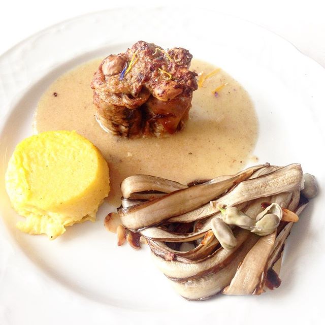 Protagonista del secondo è stato il capretto gratinato alle nocciole della Val Belluna e radicchio trevigiano con polenta cinquantino di Castelfranco, accompagnato da un rosso piemontese, il “Barbera d’Alba” DOC “Borbonica” dei Produttori di Govone.