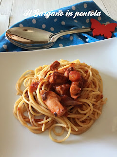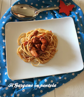 Ieri sera il mio consorte è tornato a casa con un bel polpo appena pescato e “arricciato” come è uso qui in Puglia (ovvero battuto contro gli scogli al fine di renderlo più tenero) ed ho subito deciso di usarlo per preparare un delizioso sugo con il quale condire gli spaghetti.