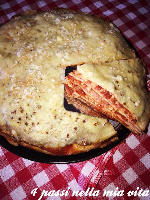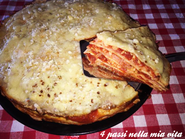Imburriamo leggermente il fondo di uno stampo a cerniera rotondo, disponiamo la prima crespella e condiamo con prosciutto, 1 mestolo di passata di pomodoro, 1 cucchiaio di formaggio e mozzarella a pezzetti. Copriamo con un’altra crespella e continuiamo così fino a terminarle tutte.