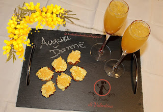 Per prima cosa auguri a tutte le donne! Mi sono un po’ scervellata per proporre qualcosa a tema, forse potrà sembrare banale la mia scelta, però in fondo la mimosa è il simbolo di questa giornata. Quindi perché non un bel cocktail mimosa con delle tartine mimosa? Banali ma di sicuro effetto, con una piccola variante sulla bevanda, siccome non amo lo champagne e ho optato per il nostrano Prosecco.
