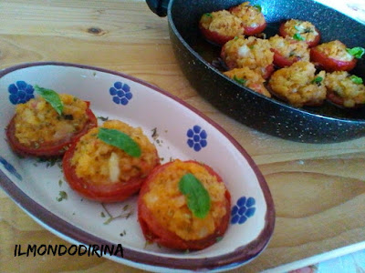 Fate andare a fuoco dolce e con il coperchio per una buona mezz’ora, poi togliete il coperchio e fate evaporare l’acqua di cottura. I pomodori sono pronti quando si attaccheranno un pò al fondo della padella. Serviteli tiepidi.