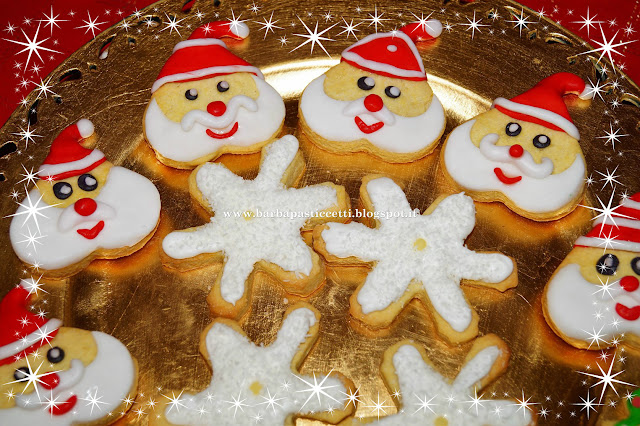 Per quanto riguarda gli alberi di Natale ho aggiunto smarties e pallini di zucchero colorati, mentre per i fiocchi di neve dopo averli glassati con la ghiaccia, li ho subito spolverizzati con farina di cocco e messo un pallino di zucchero al centro.