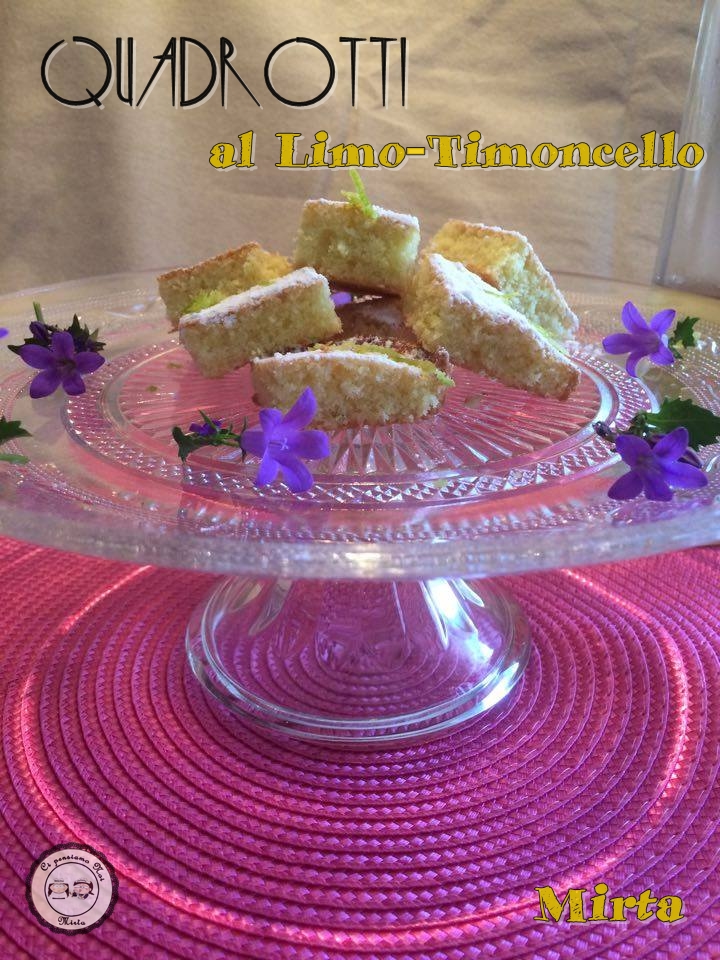 Un giorno avevo voglia di fare qualcosa di buono con anche dei limoni,una tortina fresca golosa particolare. Si perchè all’interno di questi quadrotti ho messo un liquore particolare che fa la mia mamma ….vi giuro che le dosi non le so è un suo segreto, una sua preparazione quando lo fa tutti fuori casa!!!! So solo che ha il limone e il fantastico timo selvatico che adoro immensamente.