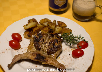 - La carne delicata della quaglia non avrebbe bisogno di essere macerata ma per paura che mi si seccasse troppo durante la cottura io ho lasciato marinare i volatili per un’oretta.