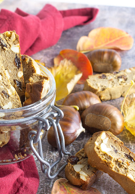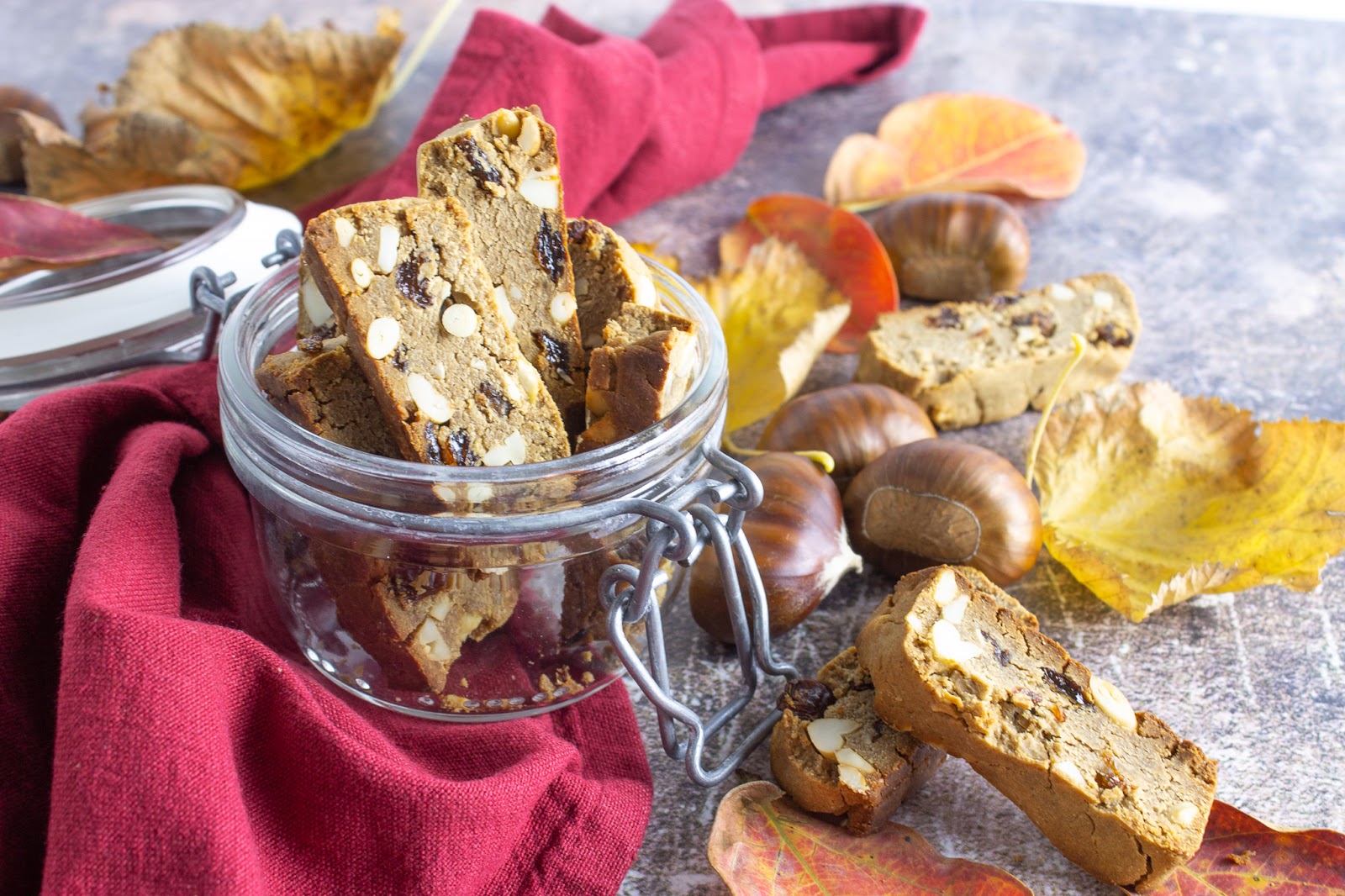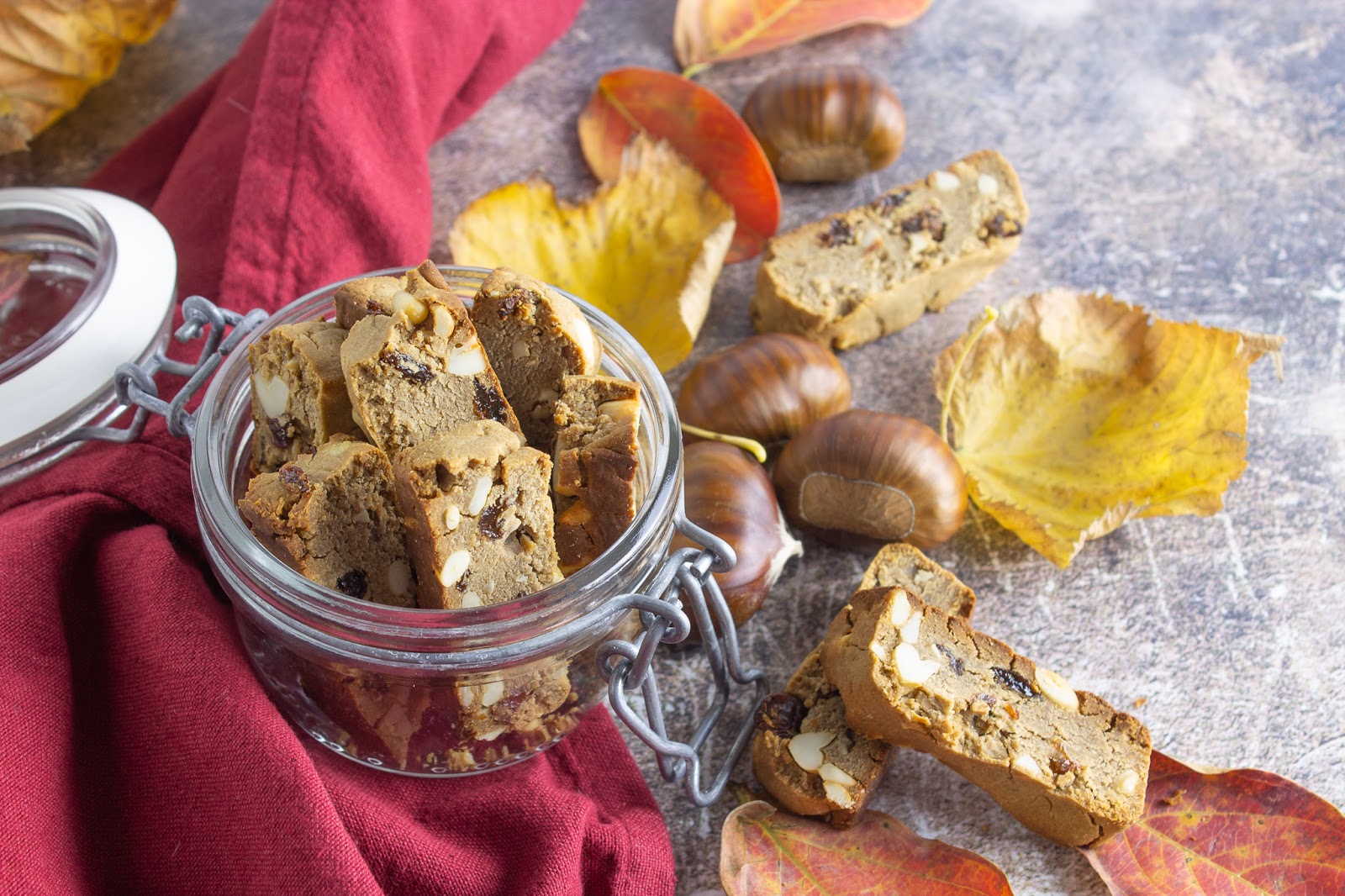 Il castagnaccio è una preparazione povera a base di farina di castagne, priva di lattosio, senza uova e senza glutine! Questo significa è un dolce perfetto per tutte, o quasi, le intolleranze. Io ho deciso di trasformare questa preparazione in comodi biscotti da conservare in un vaso di vetro e sgranocchiare nelle fredde serate d’inverno assieme ad una tisana fumante. Ma la cosa migliore di questi biscotti è che non hanno zuccheri aggiunti, le castagne e le uvette nell’impasto sono naturalmente dolci e non hanno bisogno di altro!