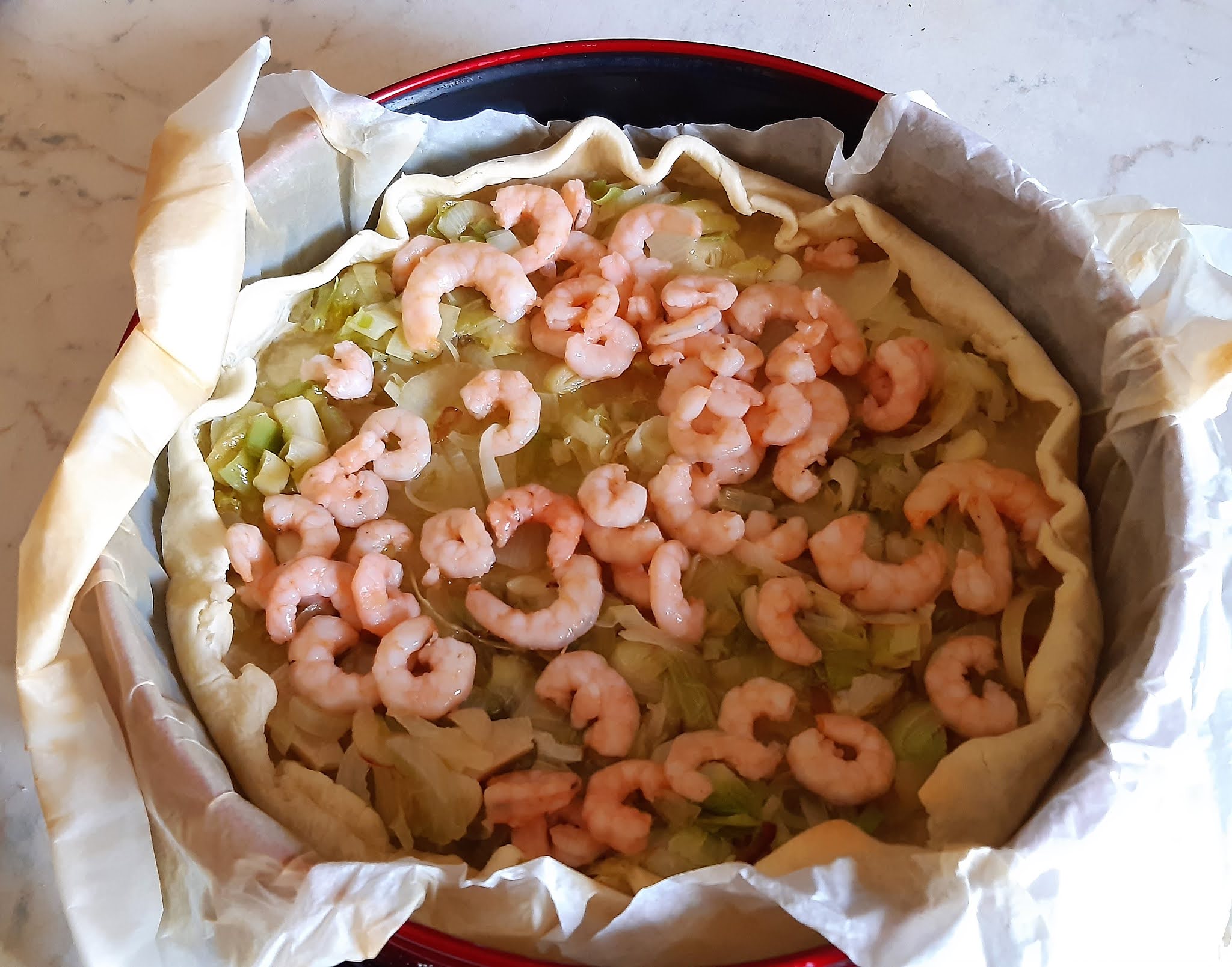 Oggi vi voglio parlare di una quiche buonissima. L’ho preparata con porri, cipolla, gamberetti e una cremina deliziosa a ricoprire il tutto, composta da panna, uova e gruviera: un accostamento di sapori speciale che, sono certa, vi conquisterà.