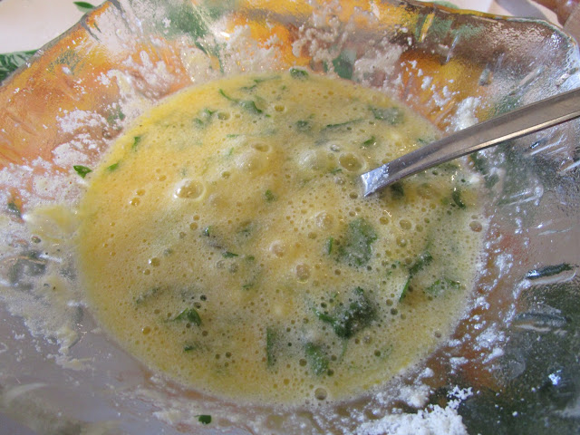 - quando il composto sarà freddo aggiungere la curcuma, il formaggio grattugiato, le uova leggermente sbattute, il prezzemolo, la noce moscata e l’erba cipollina