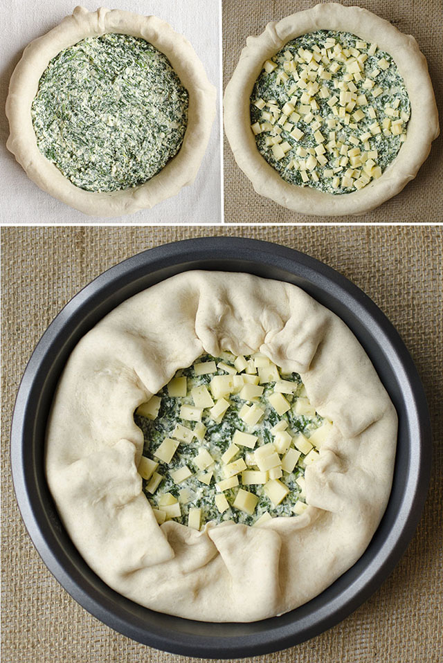 La torta salata, o quiche per la cucina francese, ha il classico e sempre piacevole ripieno di ricotta - spinaci, con un’aggiunta di un formaggio adatto al forno.