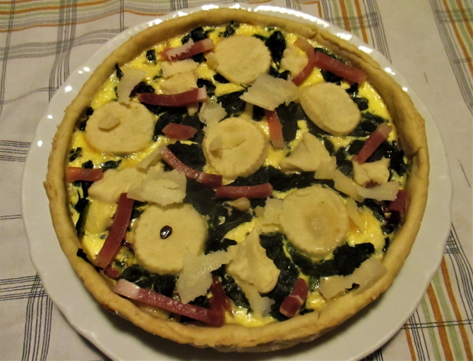 4) Stendete l’impasto per la brisee e mettetelo in una tortiera foderata con carta forno. Mettete all’interno gli spinaci, lo speck, l’emmental tagliato a dadini e versate sopra l’appareil. Infornate a 180 gradi per circa 25 / 30 mnuti, dipende dal vostro forno.