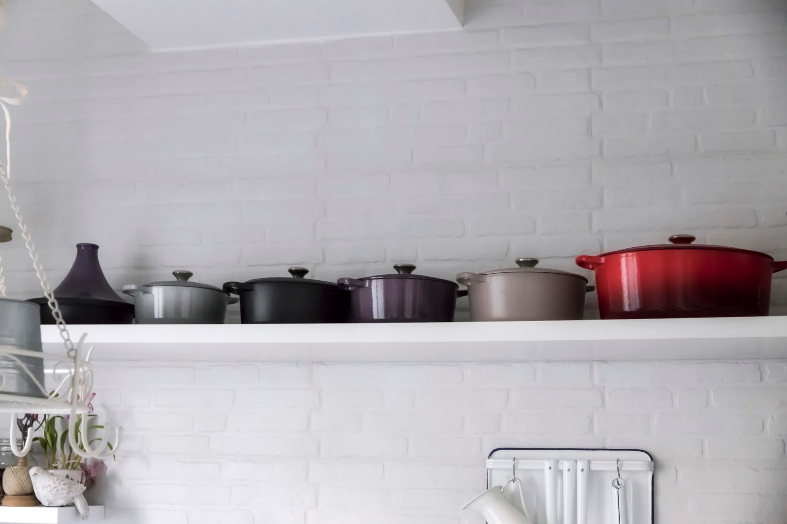 *Sulla mensola della mia cucina: Cocotte tonde ed ovali + Tajine di LeCreuset Italia.