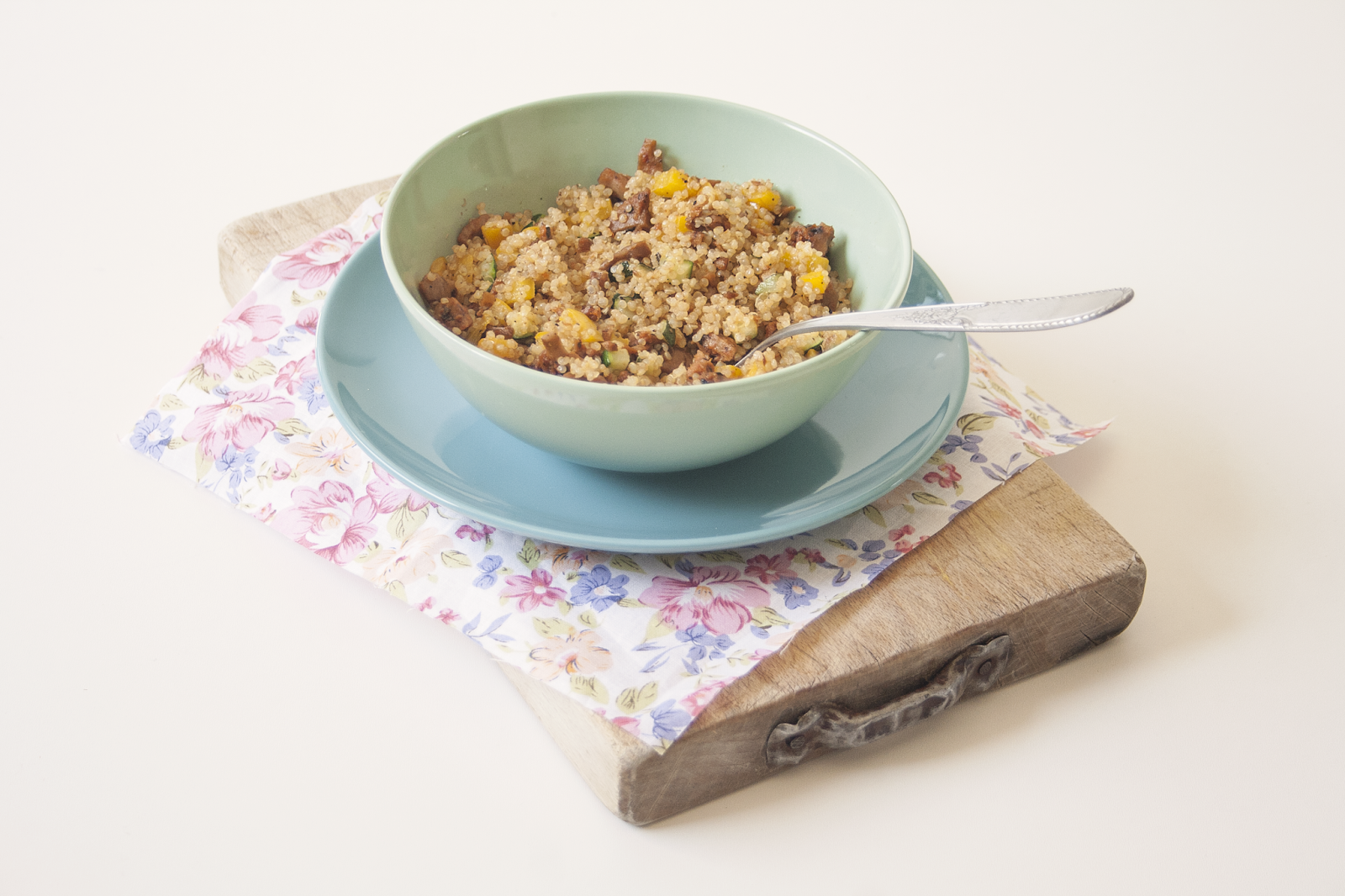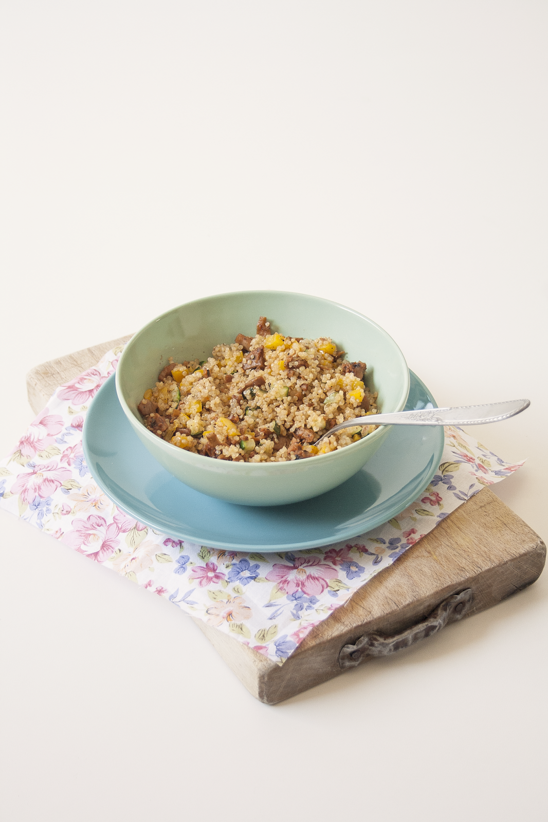 oggi vi voglio proporre un primo piatto salato semplice da fare e perfetto per la stagione calda: quinoa con straccetti veggie. Questa ricetta nasce in collaborazione con i fantastici prodotti Céréal Bio: la quinoa al naturale e gli straccetti veggie 100% vegetali realizzati a base di soia e grano e arricchiti con spezie varie (paprika, cumino, coriandolo, aglio, peperoncino di Cayenna, barbabietola rossa in polvere e origano).