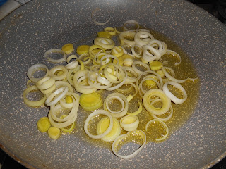 Mettiamo qualche cucchiaio di olio evo e facciamo appassire il porro,