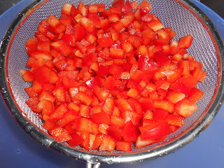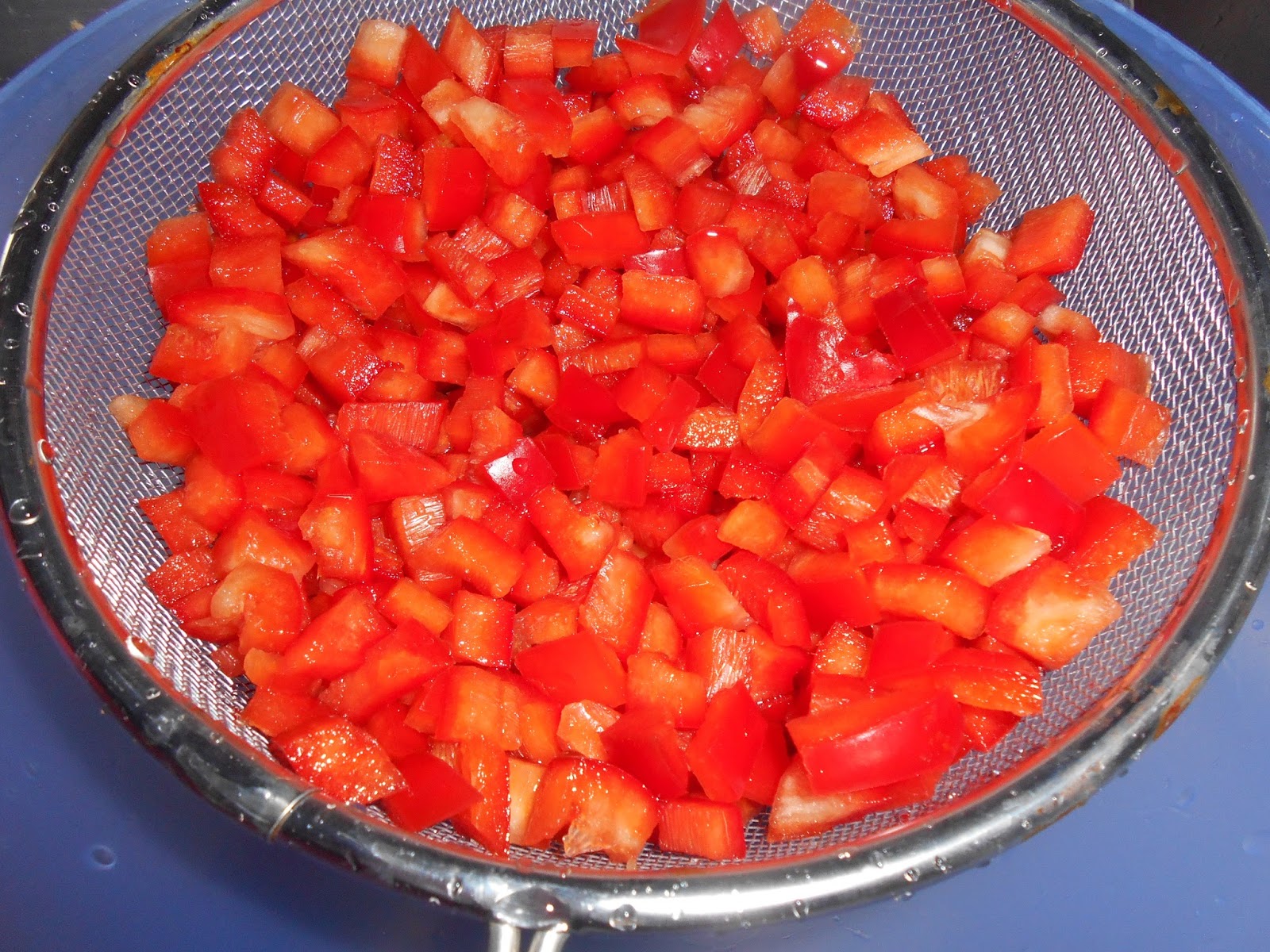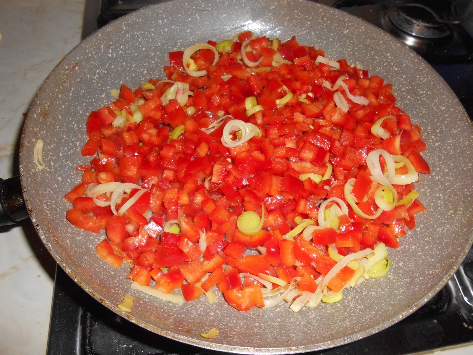 adesso aggiungiamo i peperoni e un bicchiere d’acqua,