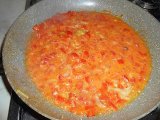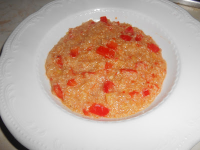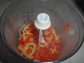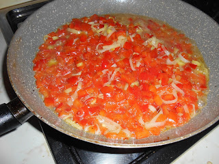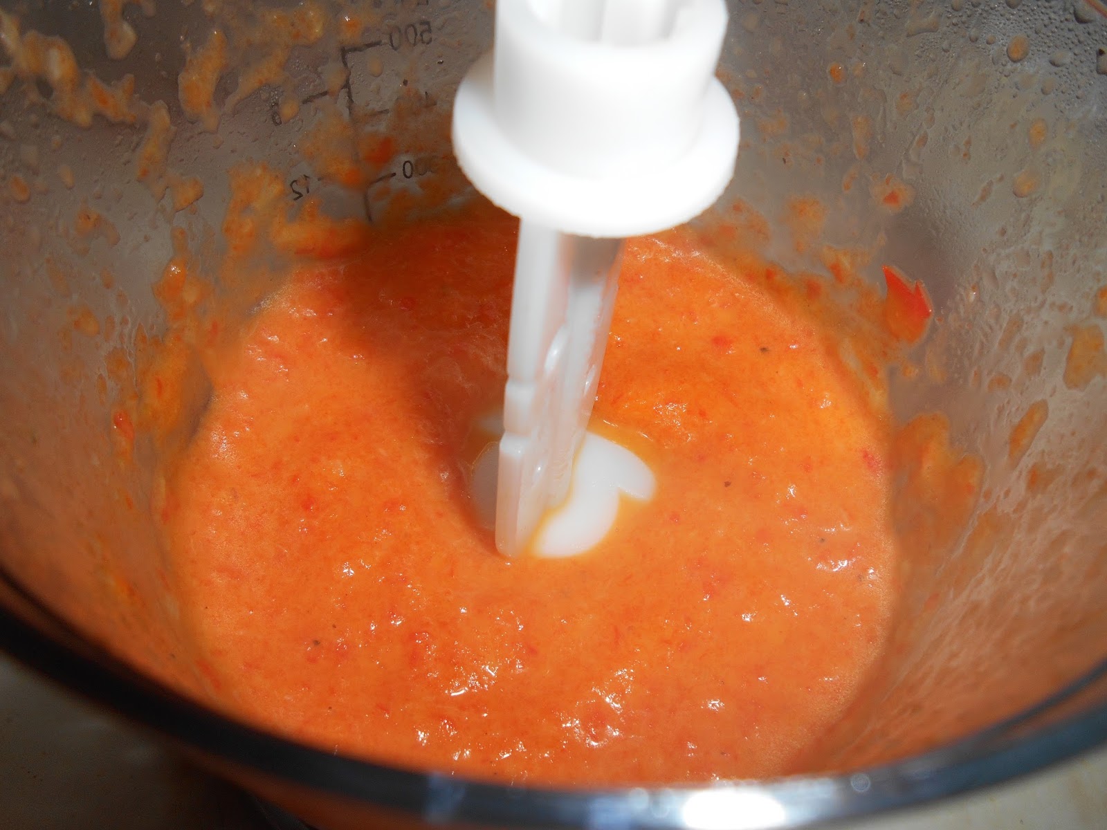 copriamo e facciamo andare finché il peperone risulterà morbido.Frulliamo parte della verdura,