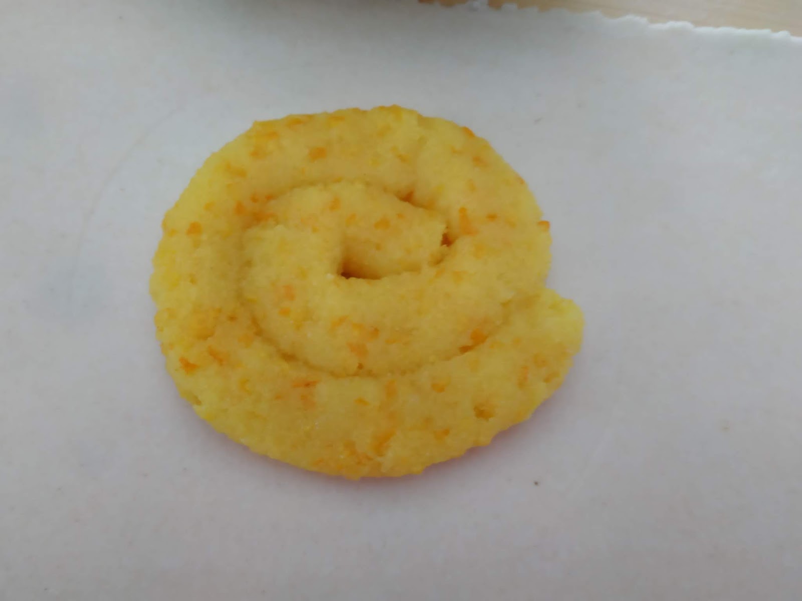 Mettiamo la crema all’arancia in un sac à poche e farciamo i dischetti ritagliati.