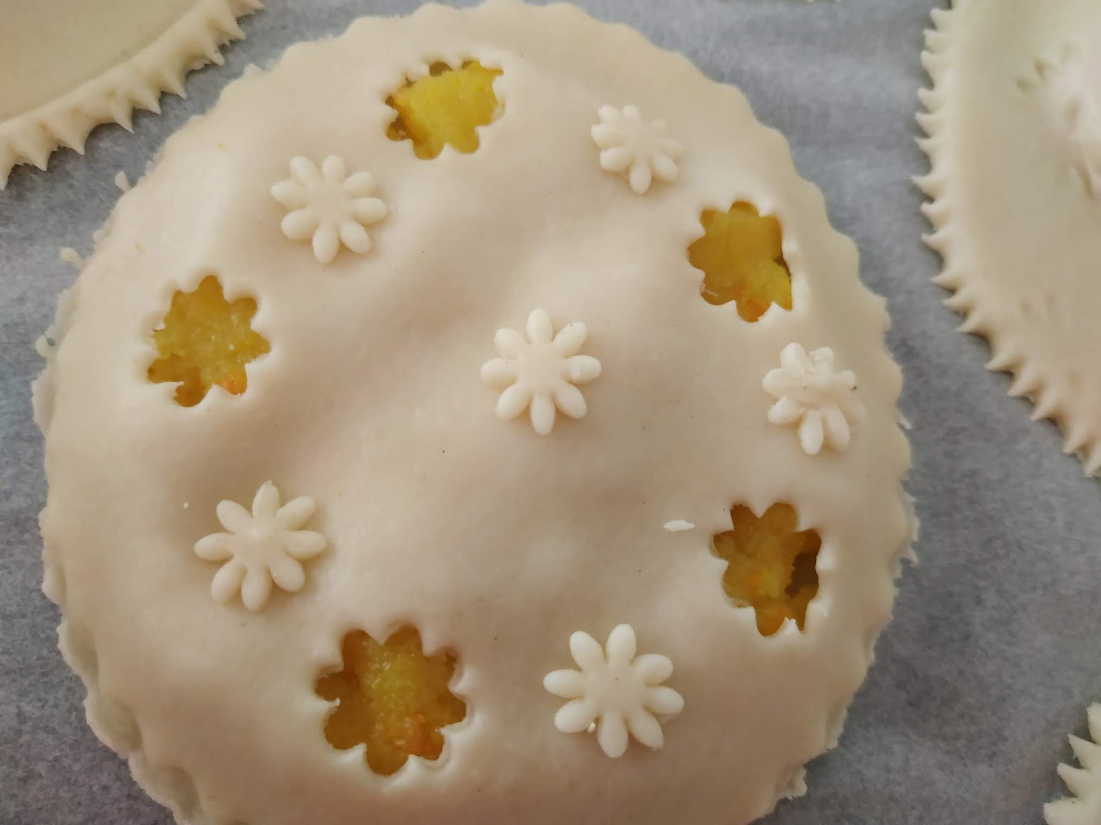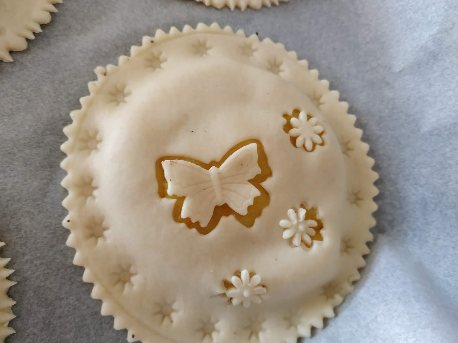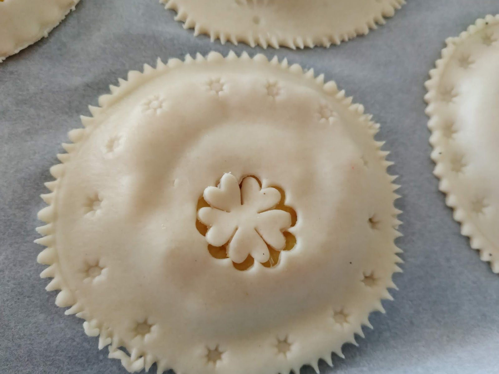 Nella sfoglia che andrà posizionata nella parte superiore realizziamo le decorazioni che ci piacciono.