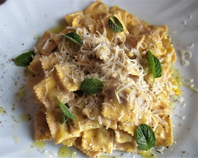 RAVIOLI ALLA BAGNA CAODA CON FOGLIE DI MENTA