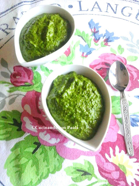 e li ho conditi semplicemente con un pesto di Spinaci parmigiano e noci