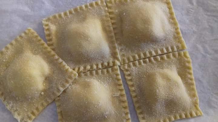 stendere la sfoglia di pasta,mettere i mucchietti di ripieno e tagliare i ravioli della forma desiderata (mezzaluna,quadrati,rettangoli ecc…)
